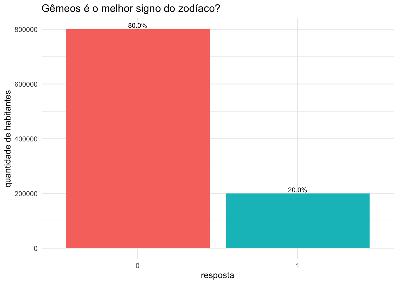 Claro que a resposta certa seria SIM, mas, para não dizerem por aí que estou favorecendo meu próprio signo, vamos supor outra realidade: entre os 1 milhão de habitantes, 200 mil concordam que Gêmeos é o melhor signo, enquanto 800 mil discordam (eu sei… as pessoas têm alguma resistência com geminianos… completamente injustificada, aliás).